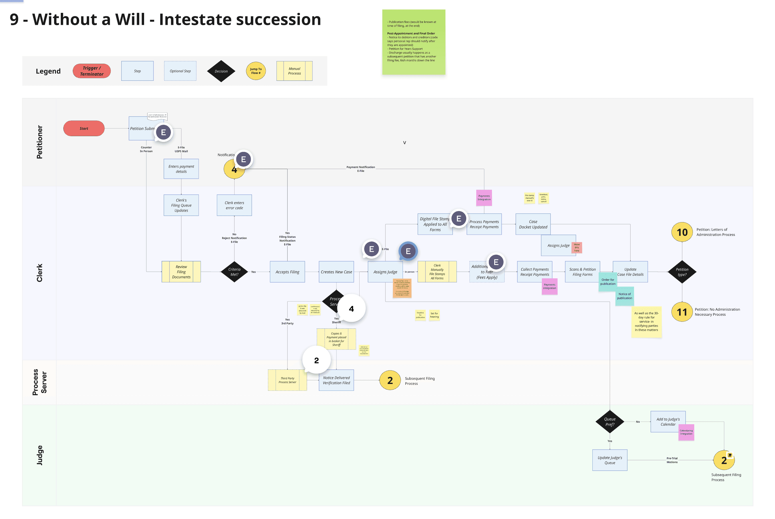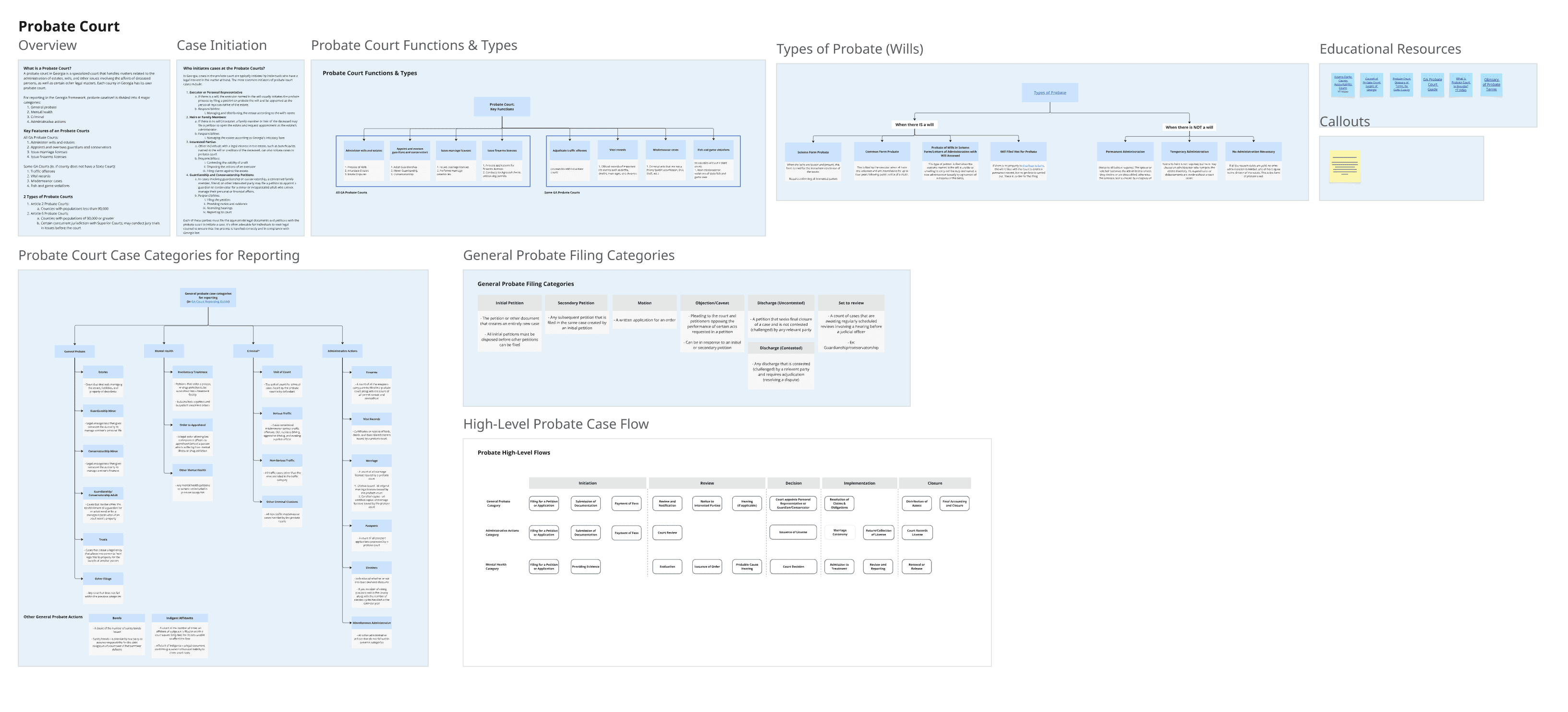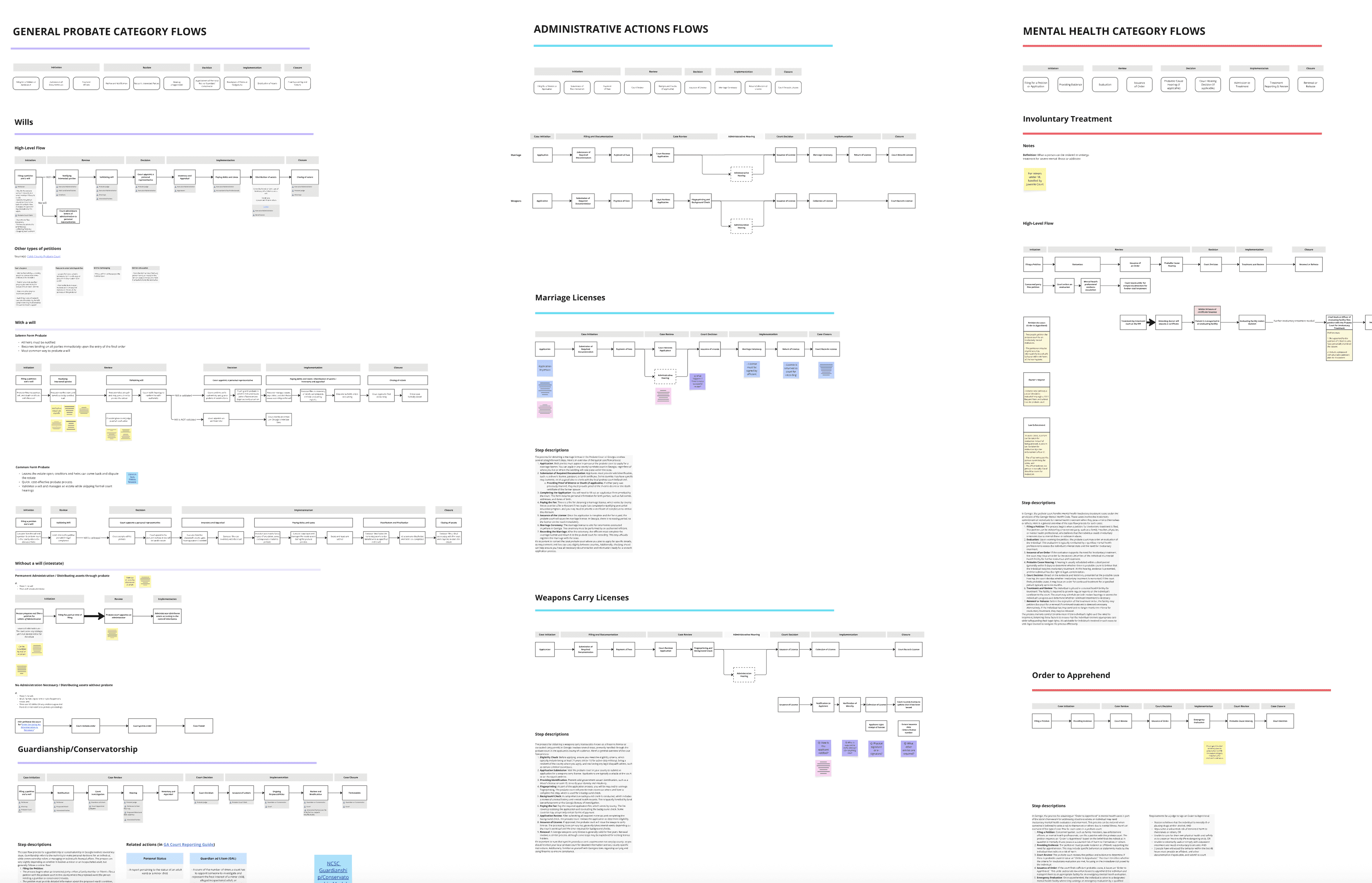 I crafted "Level 1" flows for 4 different Probate case categories to capture common processes and splintering scenarios.
