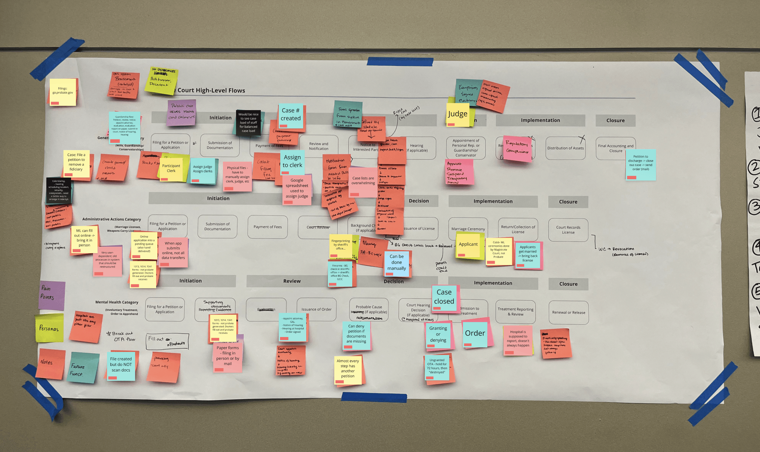 The first 12 weeks of the project was the "Discovery" phase, where our team set forth to uncover what the problems were in order to design the right solution. We conversed with State, Superior, Accountability, Magistrate, and Probate Courts - I was specifically involved as the Probate Court Experience lead.