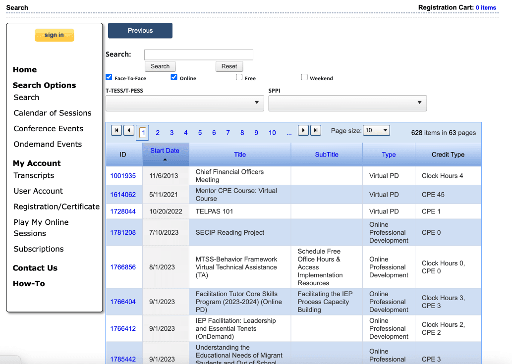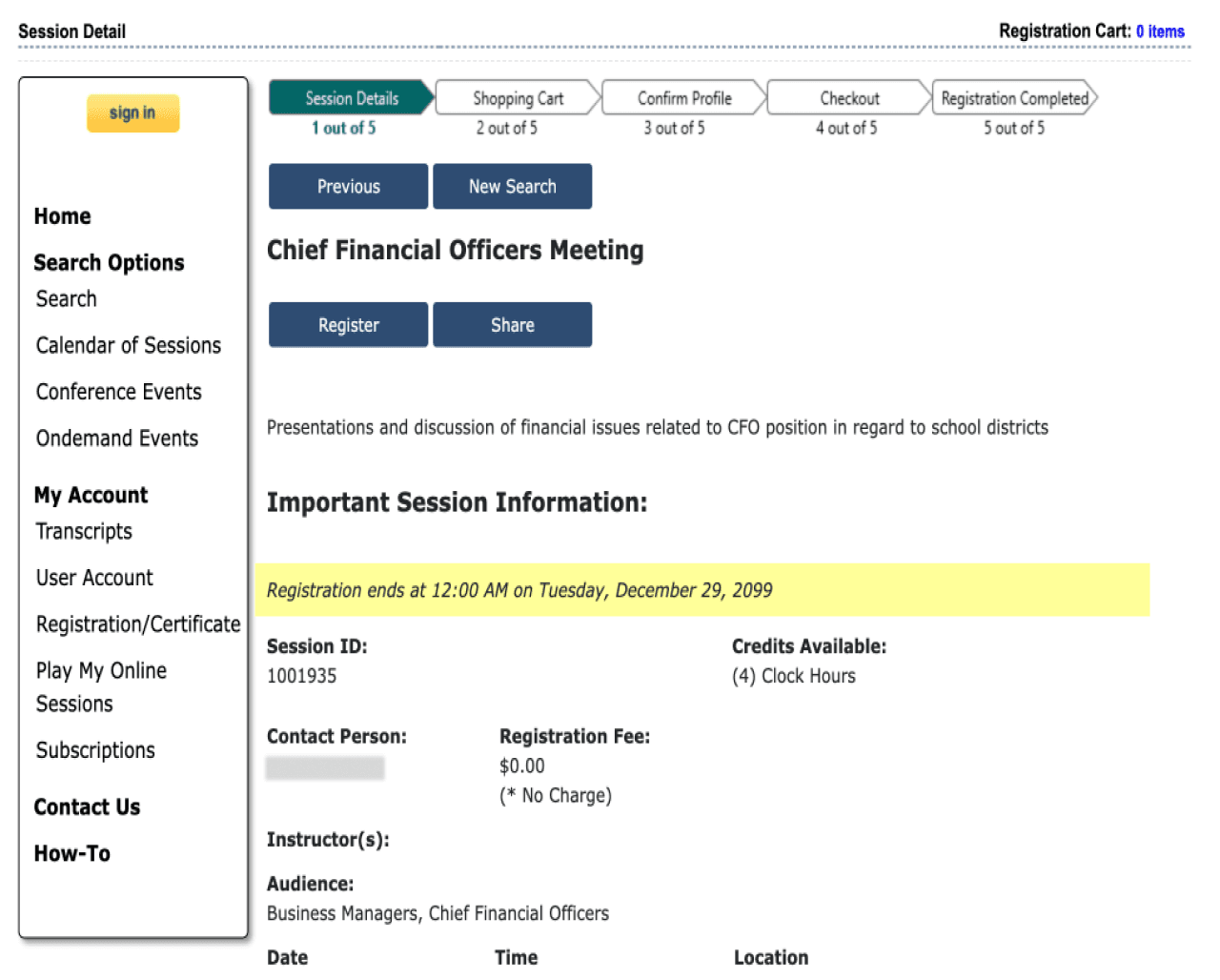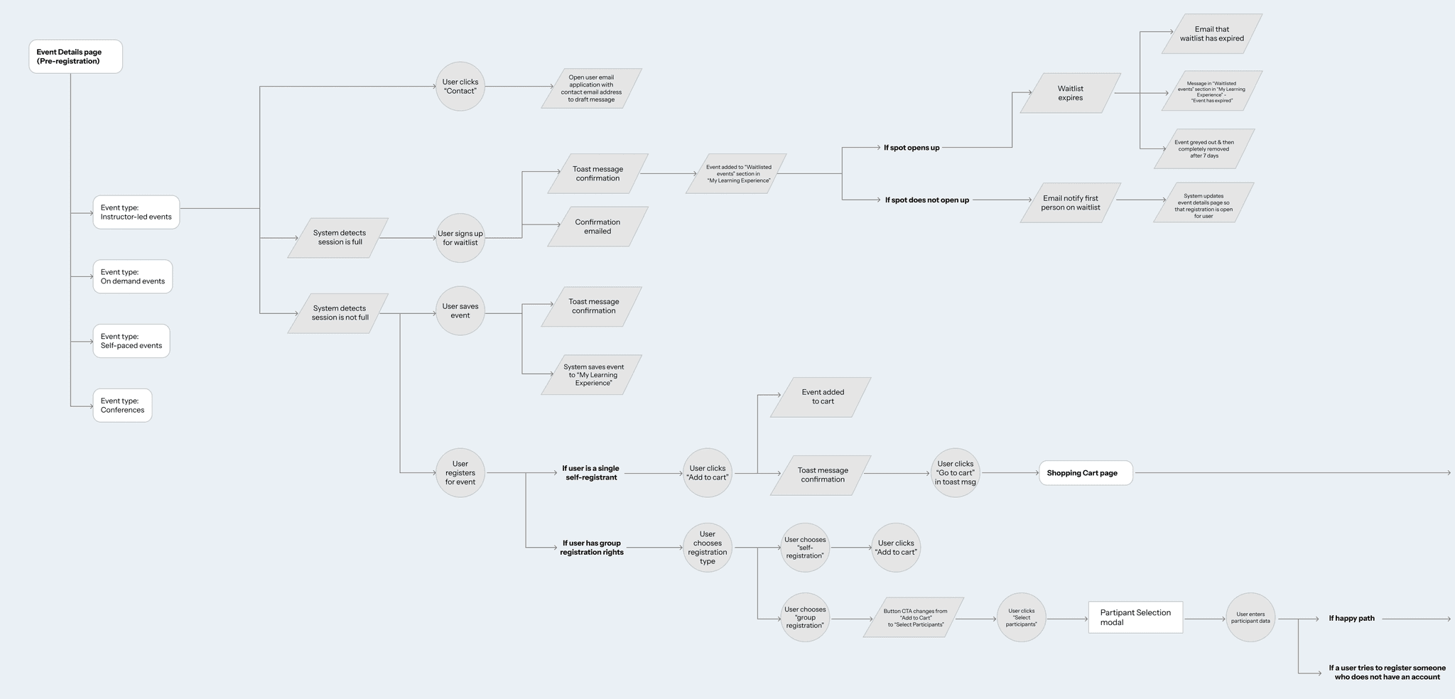 Actions and information on the page depended on the type of event (instructor-led, on demand, self-paced, conferences). Then, was the event full or open?